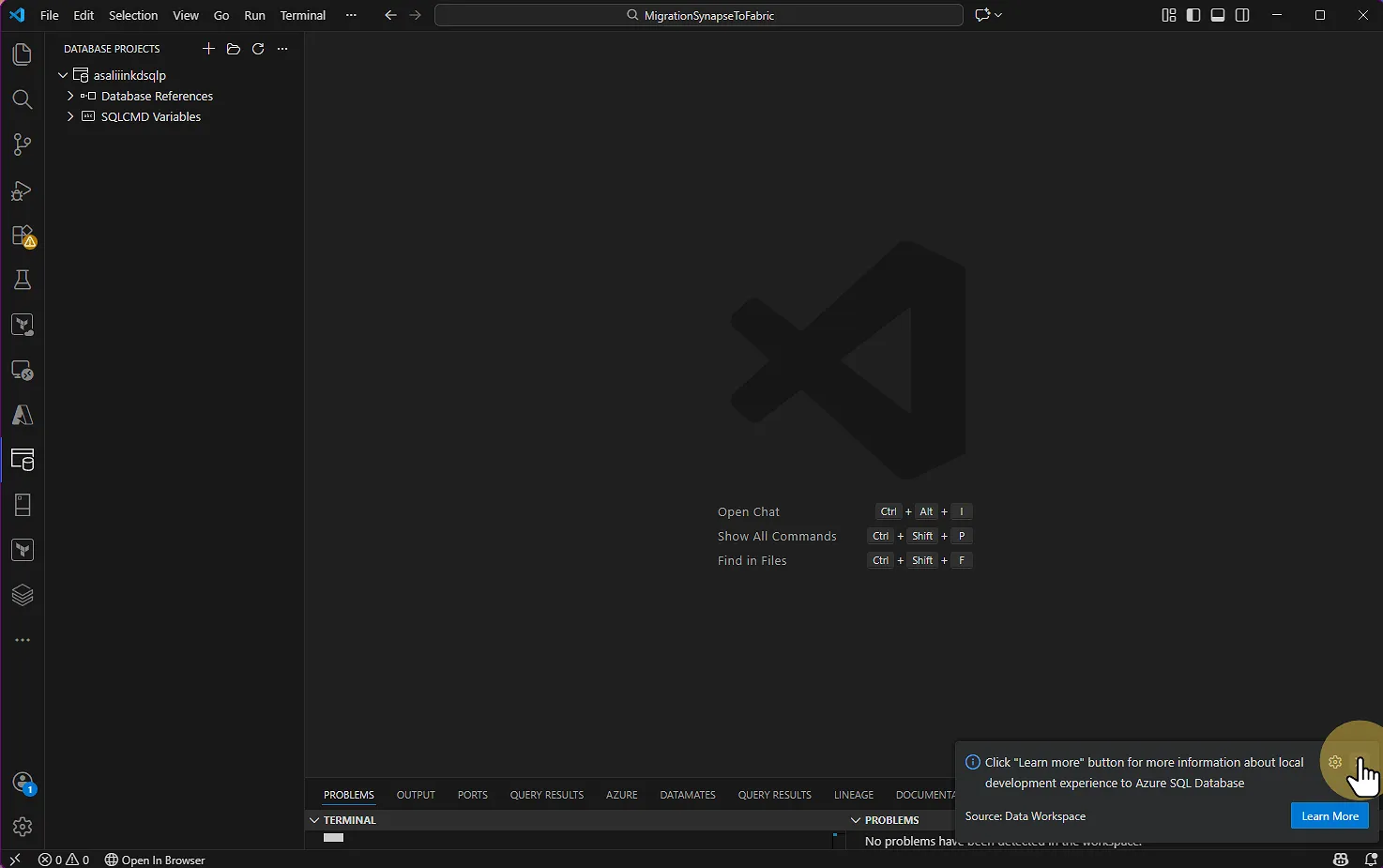 VS CODE : Database projects > Create New > Azure Synapse SQL Pool Répondez YES lorsqu'on vous demande si vous souhaitez utiliser le format SDK