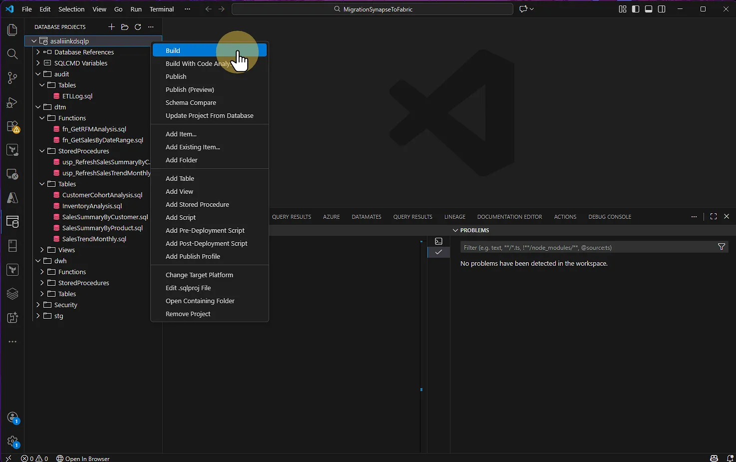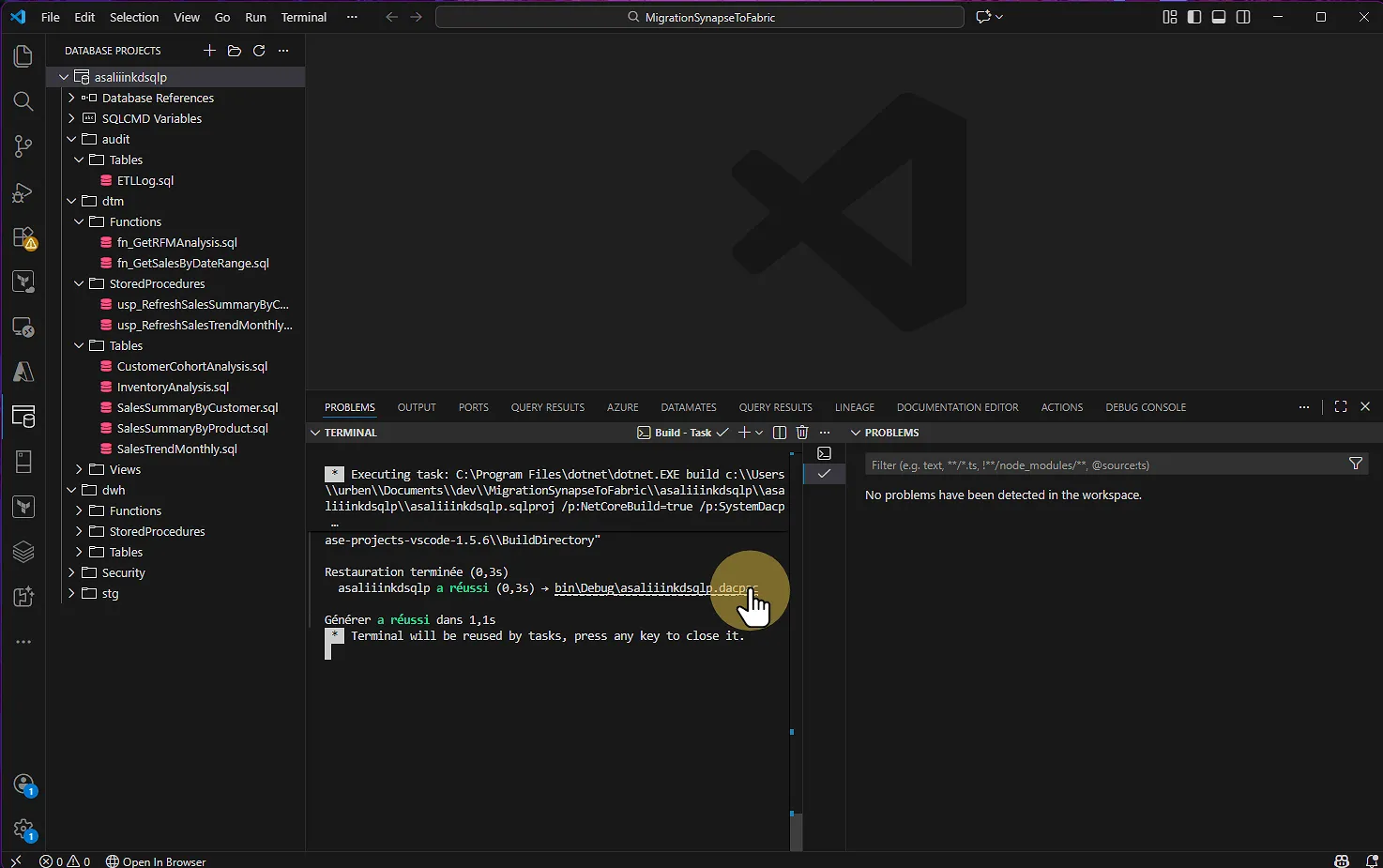 À partir de ce moment, il faut générer le fichier DACPAC qui servira à la migration vers Fabric.