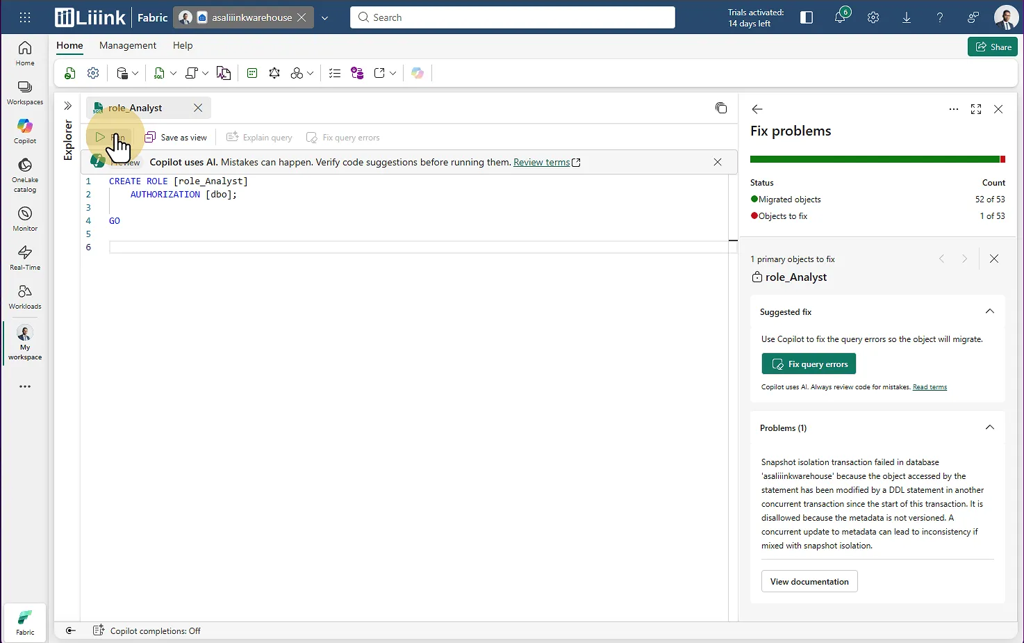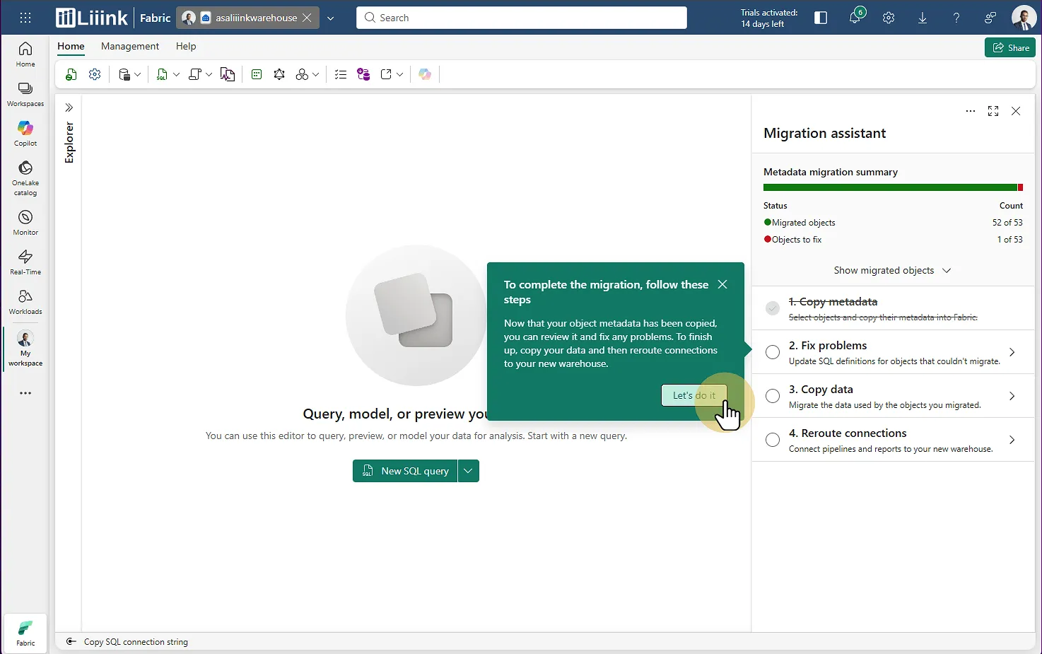 Étape 5 : Lancer l'assistant de migration dans Fabric - (Phase 1)