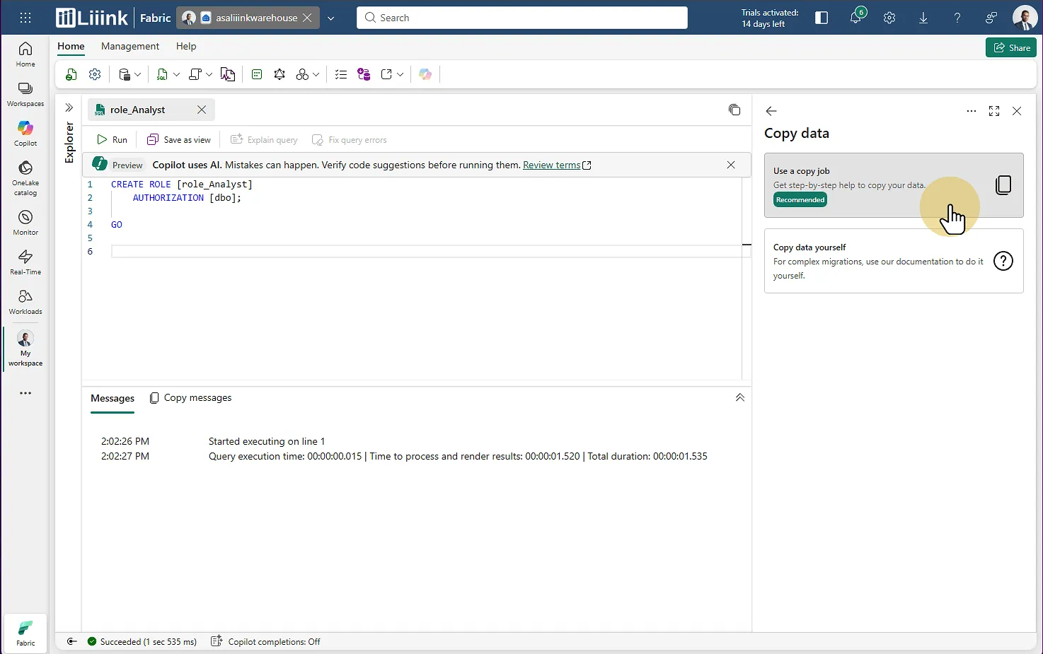 Étape 10 : Exécuter le Copy Job