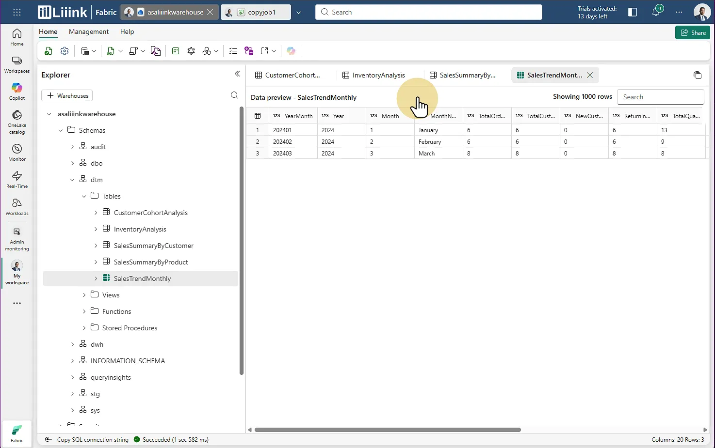 Si le travail a bien été fait, vous retrouverez l'intégralité de vos données dans votre warehouse Fabric.
