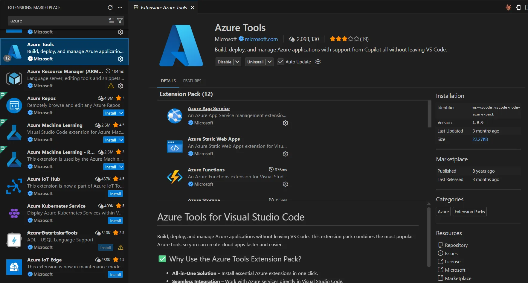 Azure Tools : La boîte à outils Azure pour VS Code